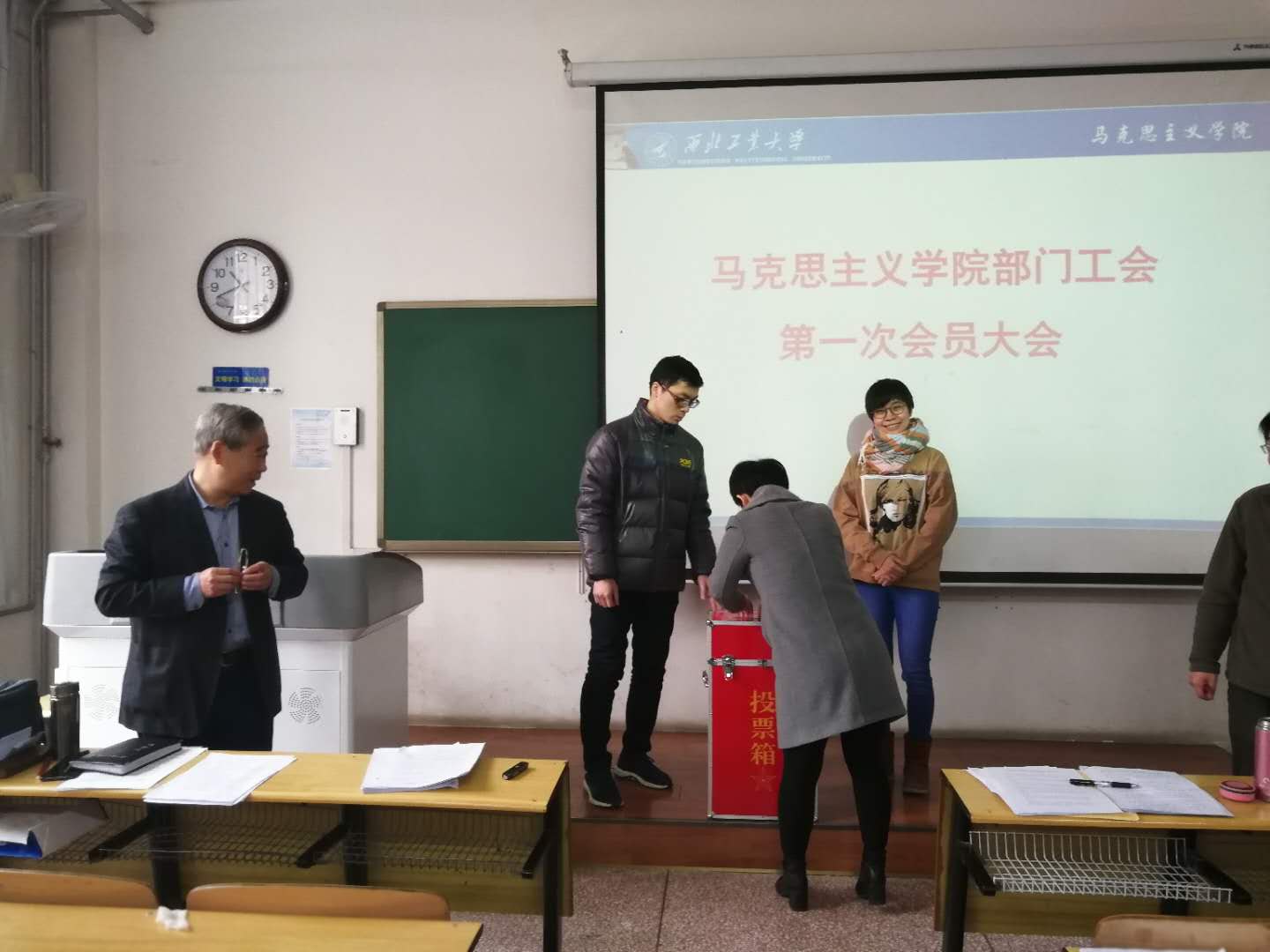 鲁卫平主持了学院部门工会会员大会,刘敏宣读了《beat365亚洲版官网部门工会选举办法》,与会工会会员通过差额选举产生了第一届工会委员会委员,王斌代表新当选的工会委员发言。