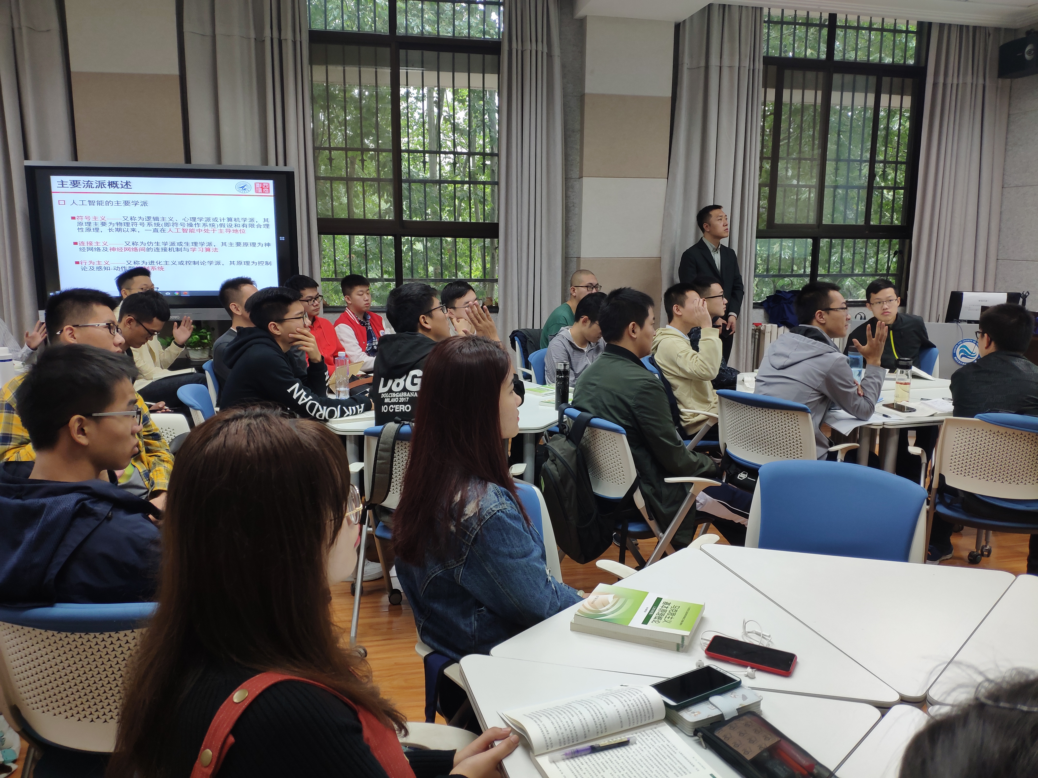 王琦教授向同学们介绍了人工智能的发展史、技术特点,并和同学们一起展望了人工智能的发展前景。同学们充满了兴趣,与老师交流互动,对于“人工智能是否会取代人类”的焦点问题,王琦老师的回答引起了同学们的思考。