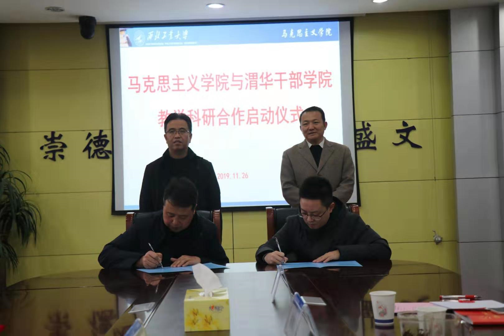 渭华干部学院常务副院长史欣荣在简要介绍了学院历史沿革和近年来主要发展成就后,表示,beat365亚洲版官网师资力量雄厚,教学资源丰富,科研成果众多,希望beat365亚洲版官网马院与渭华干部学院建立合作,拟在五个方面达成合作协议:一是在课程研发方面,西工大马院为渭华干部学院提供人才培养和智力支持,组建相关课题研发组3到4个,对渭华起义革命精神的深刻内涵、历史意义以及时代价值进行在挖掘在发展。二是签约西工大马院相关领域兼职教授3到5名,三是在渭华干部学院设立西工大马克思学院学生社会实习实践基地,一方面可以不断挖掘历史资源另一方面可以提高学生社会实践能力。四是通过各高校德育课程平台和共同打造学术论坛,深化对渭华精神的研究与传播发展。五是双方建立长期沟通交流机制。