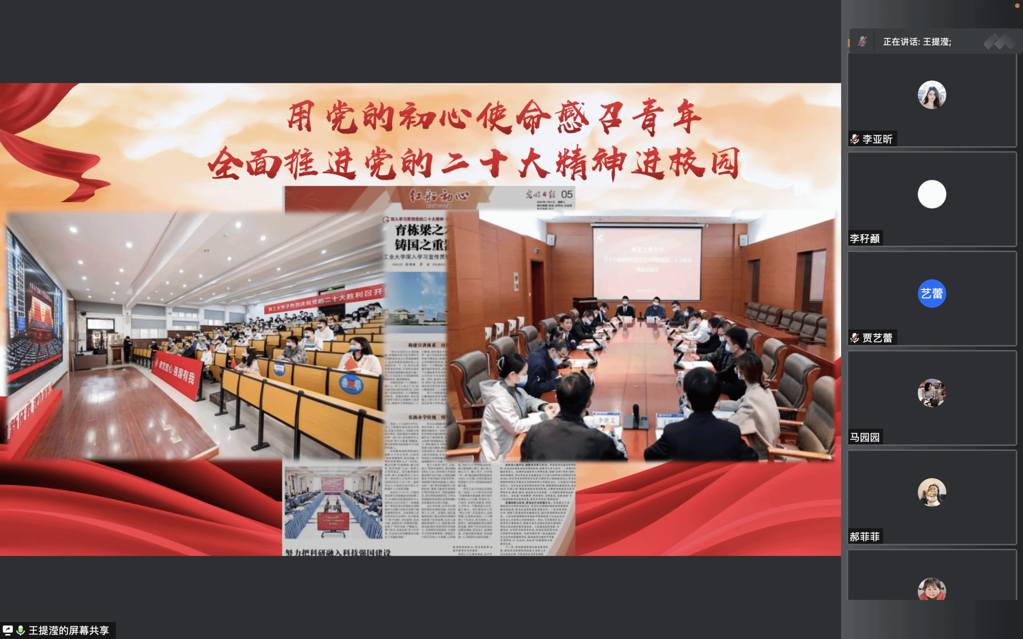 为深入学习宣传贯彻党的二十大精神,把思想和行动统一到党的二十大精神上来,将青年力量凝聚到党的二十大确定的各项任务中来,2023年3月3日下午16:00,beat365亚洲版官网马克思主义基本原理系硕士生党支部联合20617-1班团支部,在学院楼208采取线上与线下相结合的方式,共同开展“党建带团建 宣讲进支部”主题党日活动,由马克思主义基本原理系硕士生党支部书记王慧新主持,马克思主义基本原理系硕士生全体党员、入党积极分子、20617-1班团支部成员参加此次活动。