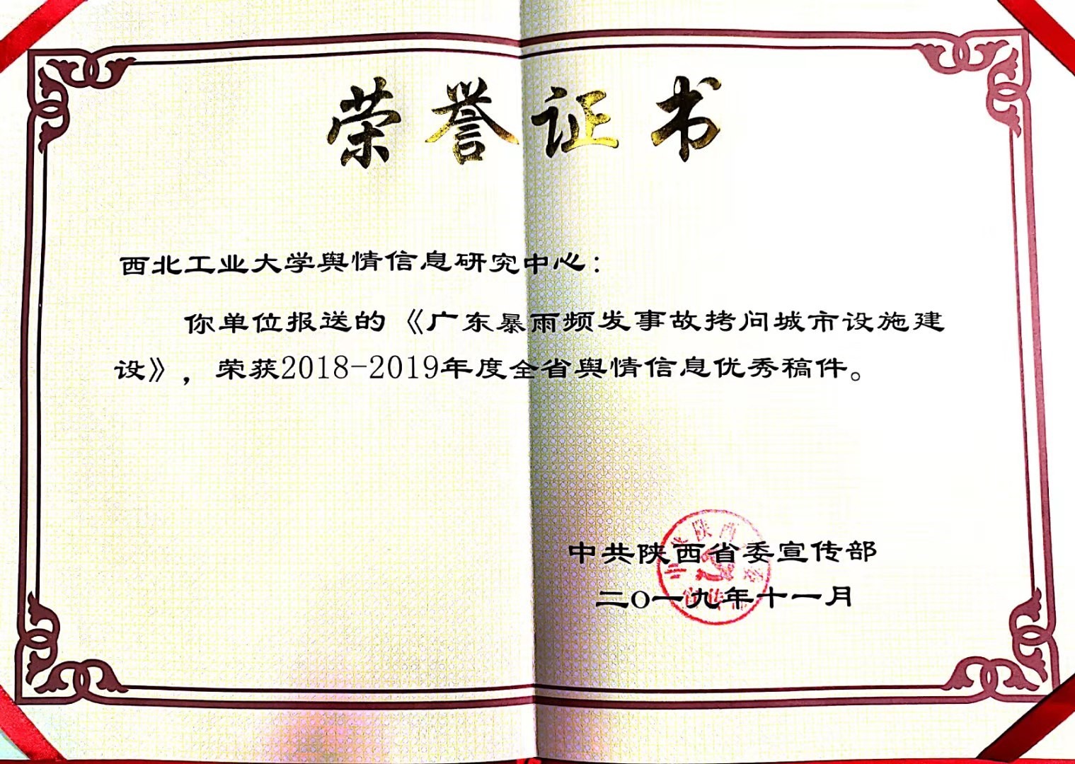 12月12日,2019年陕西省舆情信息工作会议在西安宾馆召开,会议由省委宣传部舆情信息处处长贾永安主持。beat365官网舆情工作表现突出,获得多项荣誉。beat365亚洲版官网陕西省重点舆情信息研究中心被评为2018-2019年度全省舆情信息工作先进单位、中心副主任贺苗被评为省级先进个人,她撰写的舆情稿件《广东暴雨频发事故拷问城市设施建设》被评为优秀稿件(全省共30篇),并代表中心进行《着力“四个到位”模式 凝聚舆情工作共识》的主题发言。