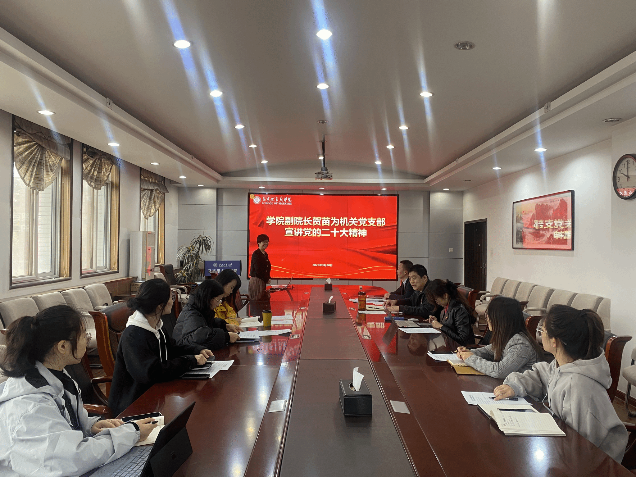 为深入学习宣传贯彻党的二十大精神,3月20日上午,beat365亚洲版官网机关党支部邀请学校党的二十大精神宣讲团成员、beat365亚洲版官网副院长贺苗作专题报告。会议由学院机关党支部书记李刚主持,机关支部全体党员参加学习。