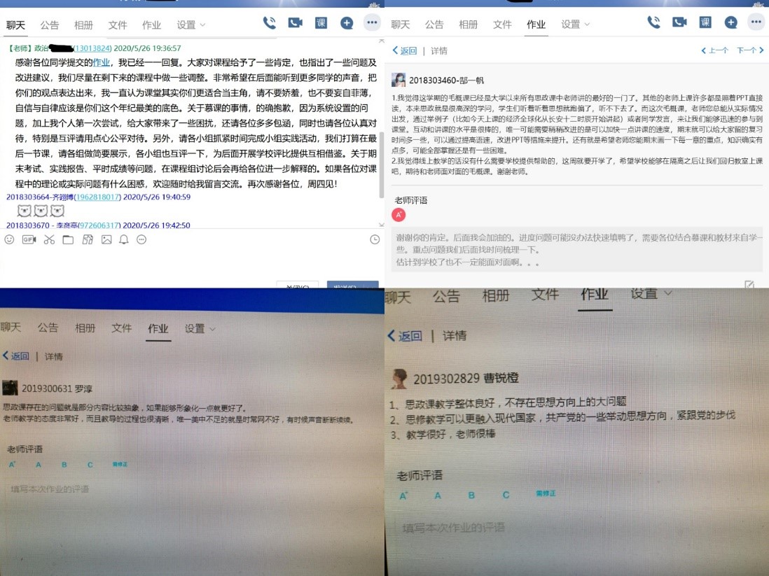近日,我院根据学校教务处要求,在全院开展本科质量保障全员自查工作。学院所有任课老师积极配合,逐项自查本学期各自教学日历、教案、教学大纲等是否规范,并且针对本科思政课存在的教学问题和整改措施和同学们展开了积极交流,学生们反响热烈,积极参与讨论,为本科思政课教学改革建言献策。
