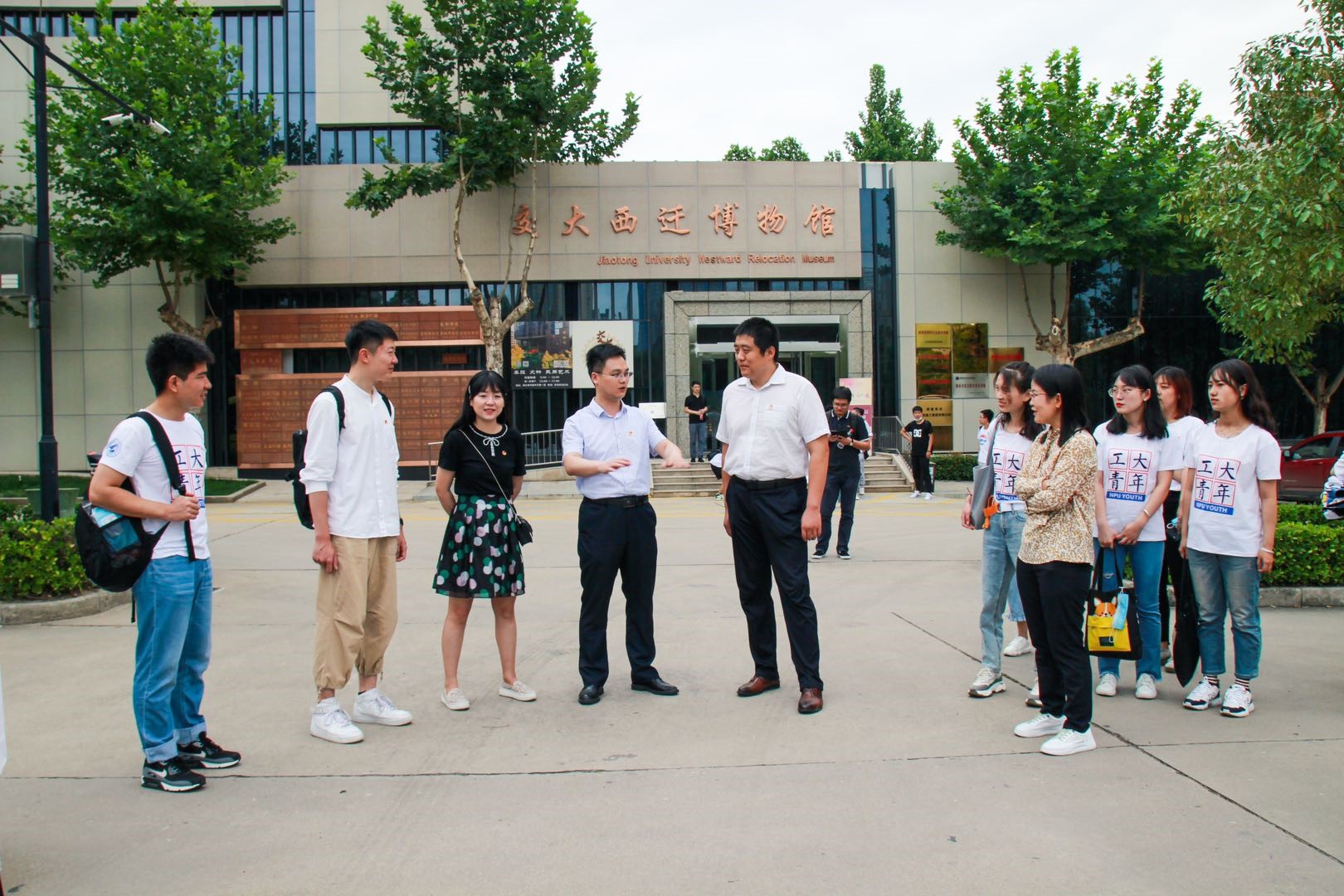 beat365亚洲版官网与西安交通大学历史渊源颇深,两校均是西迁历史及精神的实践者与塑造者。为深入学习习近平总书记来陕考察重要讲话精神,感悟“西迁精神”,厚植爱国主义情怀。7月21日上午,beat365亚洲版官网青马实践队在beat365亚洲版官网党委副书记李刚,校团委副书记马婷婷、丁镜学和指导教师陈亚丽的带领下来到西安交通大学西迁博物馆,开展了“重温西迁历史,致敬西迁精神”的实践活动。西安交通大学团委书记苏翔和团委办公室齐蔓梓老师接待了实践队,并为实践队一行进行了详细的讲解。