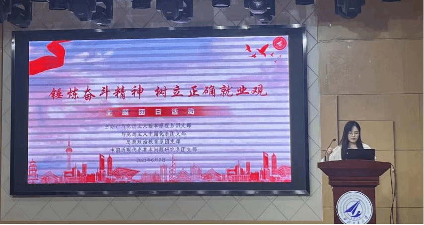 为深入学习贯彻习近平新时代中国特色社会主义思想,凝聚奋进强国新征程的磅礴青春力量,2023年6月7日下午15:00,beat365亚洲版官网马克思主义基本原理系团支部、马克思主义中国化系团支部、思想政治教育系团支部、中国近现代史基本问题研究系团支部于学院楼207报告厅共同开展“锤炼奋斗精神,树立正确就业观”主题团日活动,活动由学院团委副书记王芳主持,邀请了学校研支团成员进行典型事迹分享,学院团委书记王换老师、2022级春季博士生班主任刘远亮老师和同学们一起聆听了支教故事。