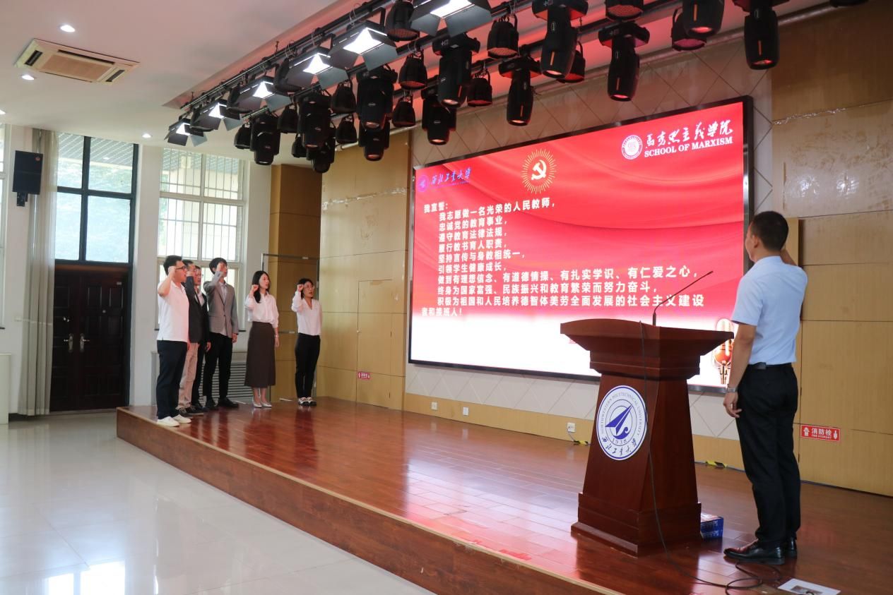蒲传新主持新入职教师宣誓仪式。首先,蒲传新就新入职教师的基本情况作了简要介绍,并代表学院对他们加入beat365亚洲版官网大家庭表示热烈欢迎。接着,举行了庄严的新进教师入职宣誓仪式。全体新入职教师右手握拳庄严宣誓,立志成为“四有”好老师,终身为国家富强、民族振兴和教育繁荣而努力奋斗。掷地有声的誓词,是每一位教师对教育事业的庄严承诺。