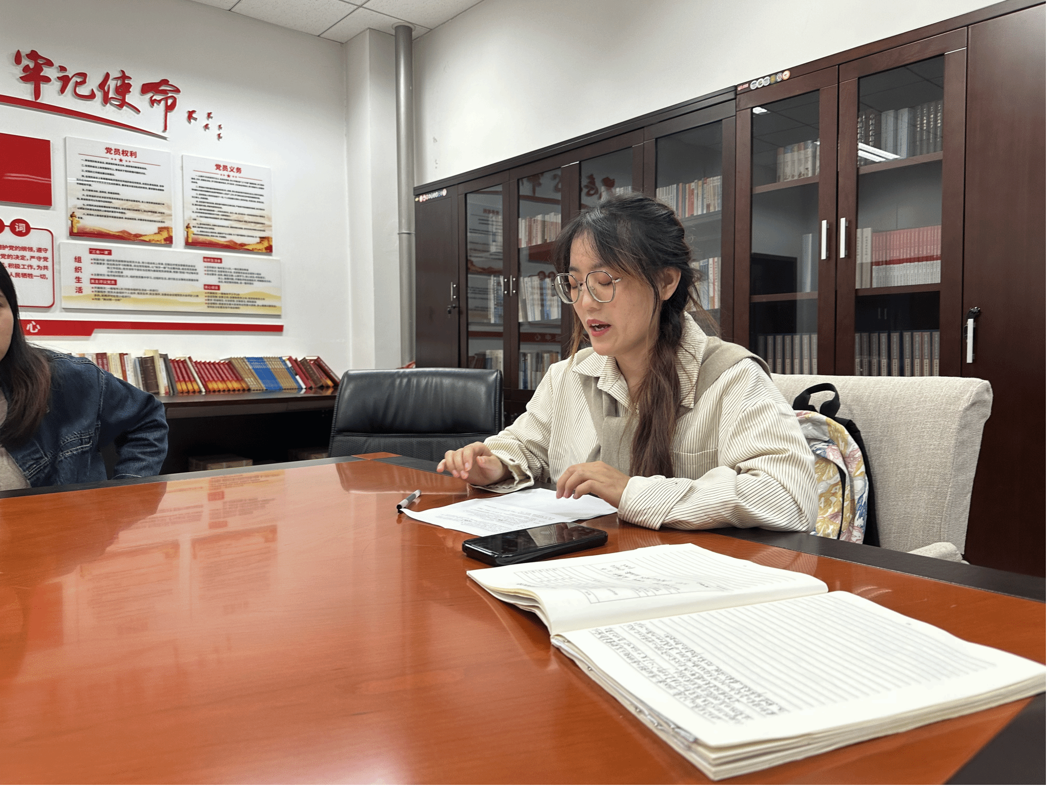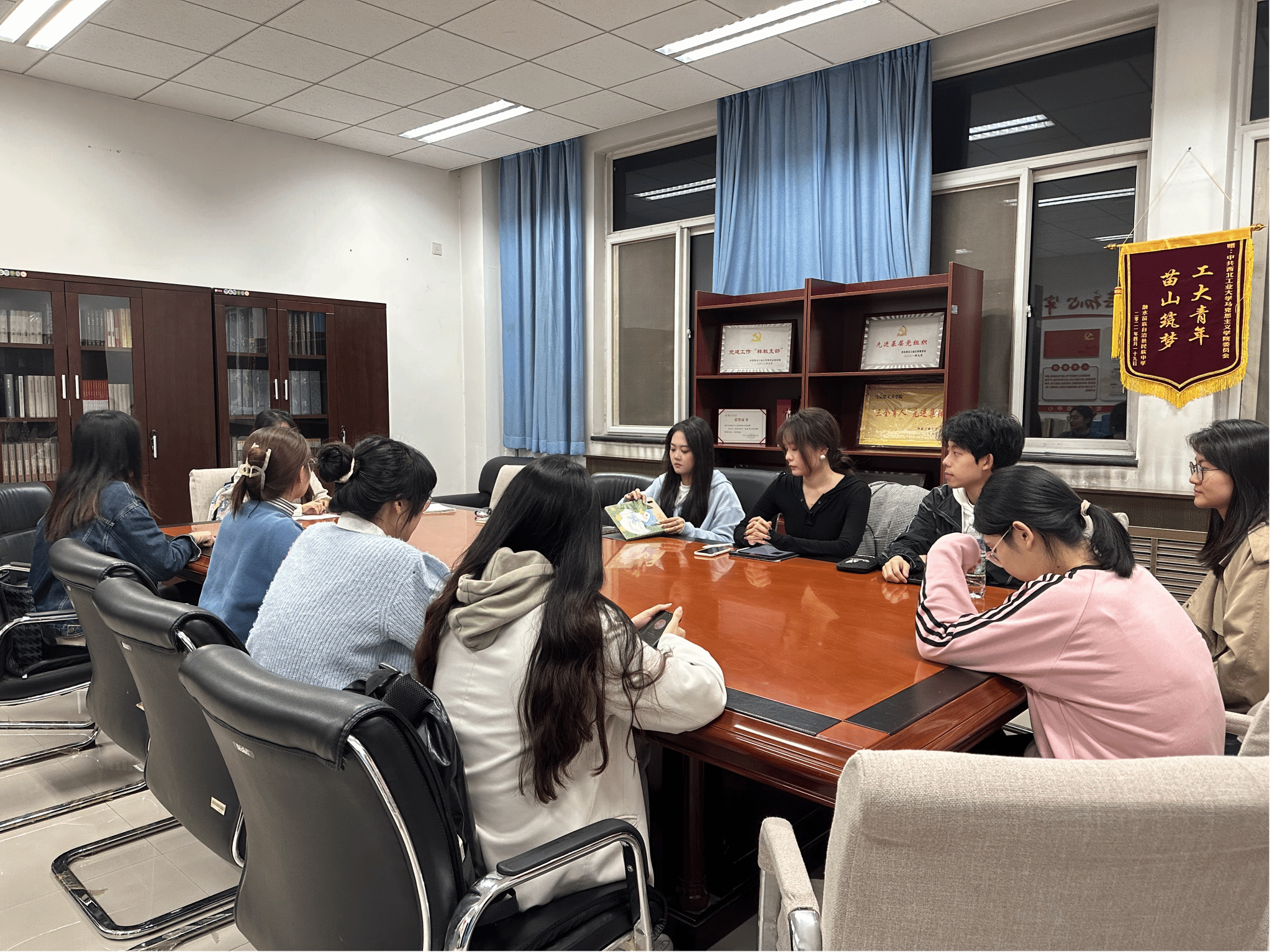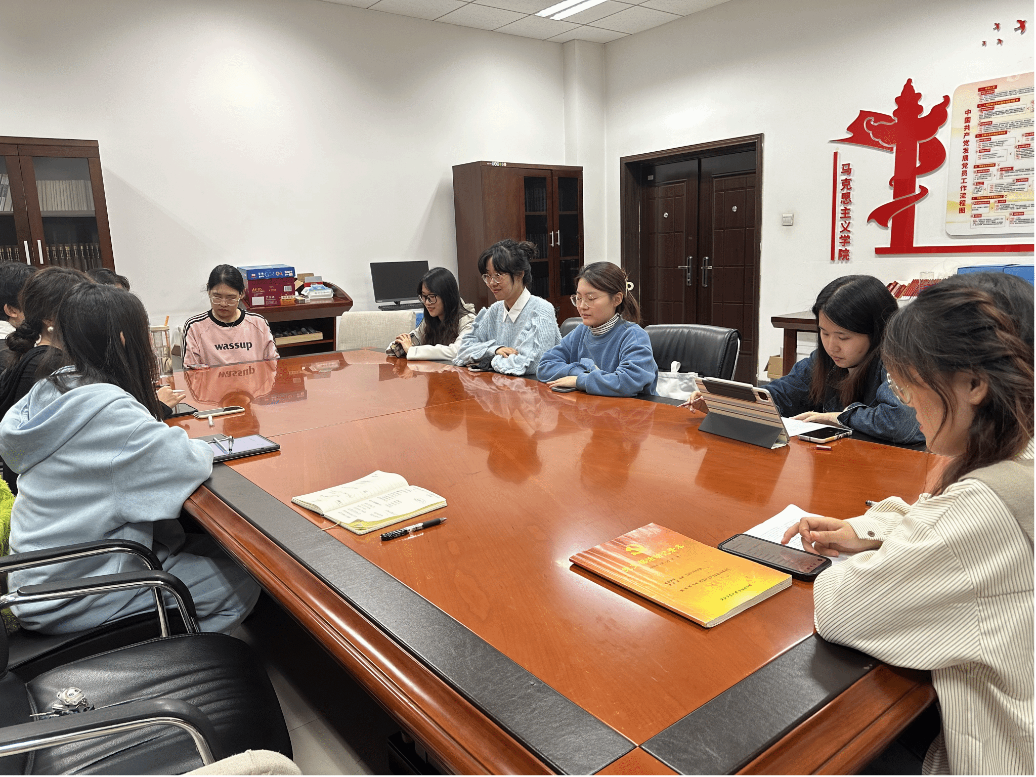 会议伊始,张肖丽带领支部党员一同学习《习近平致全国优秀教师代表的信》一文,围绕习近平总书记提出的教育家精神,支部成员开展了热烈讨论。习近平总书记在信中强调“为党育人、为国育才”,大家纷纷表示要坚定不移听党话、跟党走,以青春之躯担时代之责,把论文写在祖国大地上,写在与国家、民族、人民息息相关的伟大实践中,铸牢思想之魂,锤炼过硬本领,做堪当大任的时代新人。