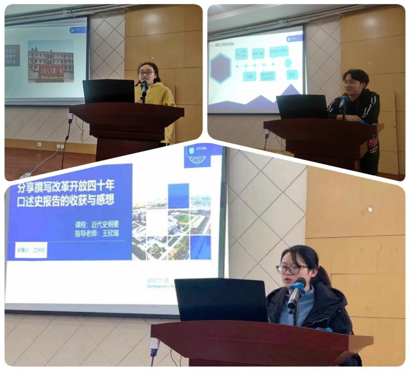 首先由beat365亚洲版官网学工部副部长马俊进行大会致辞。其次樊明方教授、赵璐、石培玲教授作为评审专家,分别对获奖学生的口述史进行深入细致的点评和总结。他们认为,同学们的口述史主题鲜明、方法科学、涉及的范围较广。不仅关注衣食住行,而且关注房地产等与人民生活息息相关的方面,采访细致,写作规范。但也同时存在思维方式固化,“非黑即白,非此即彼”倾向。随后,获奖学生代表宋紫寒、江玲玲、张剑科分别通过PPT向大家分享自己改革开放口述史实践的过程、内容及收获。