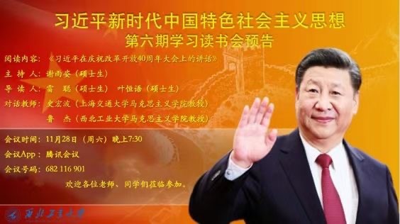 beat365亚洲版官网习近平新时代中国特色社会主义思想学习读书会至今已经举行了六期,师生们共同感受到阅读有助于提升自身的素养与思想,坚定了做有学术担当的新时代学者的信心。我们相信,全体师生共同努力,一定会把习近平新时代中国特色社会主义思想学习读书会举办的越来越好,将其打造成为马克思主义理论研究方面具有学术影响的西工大品牌。