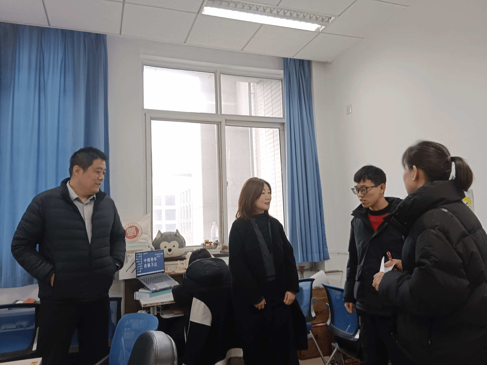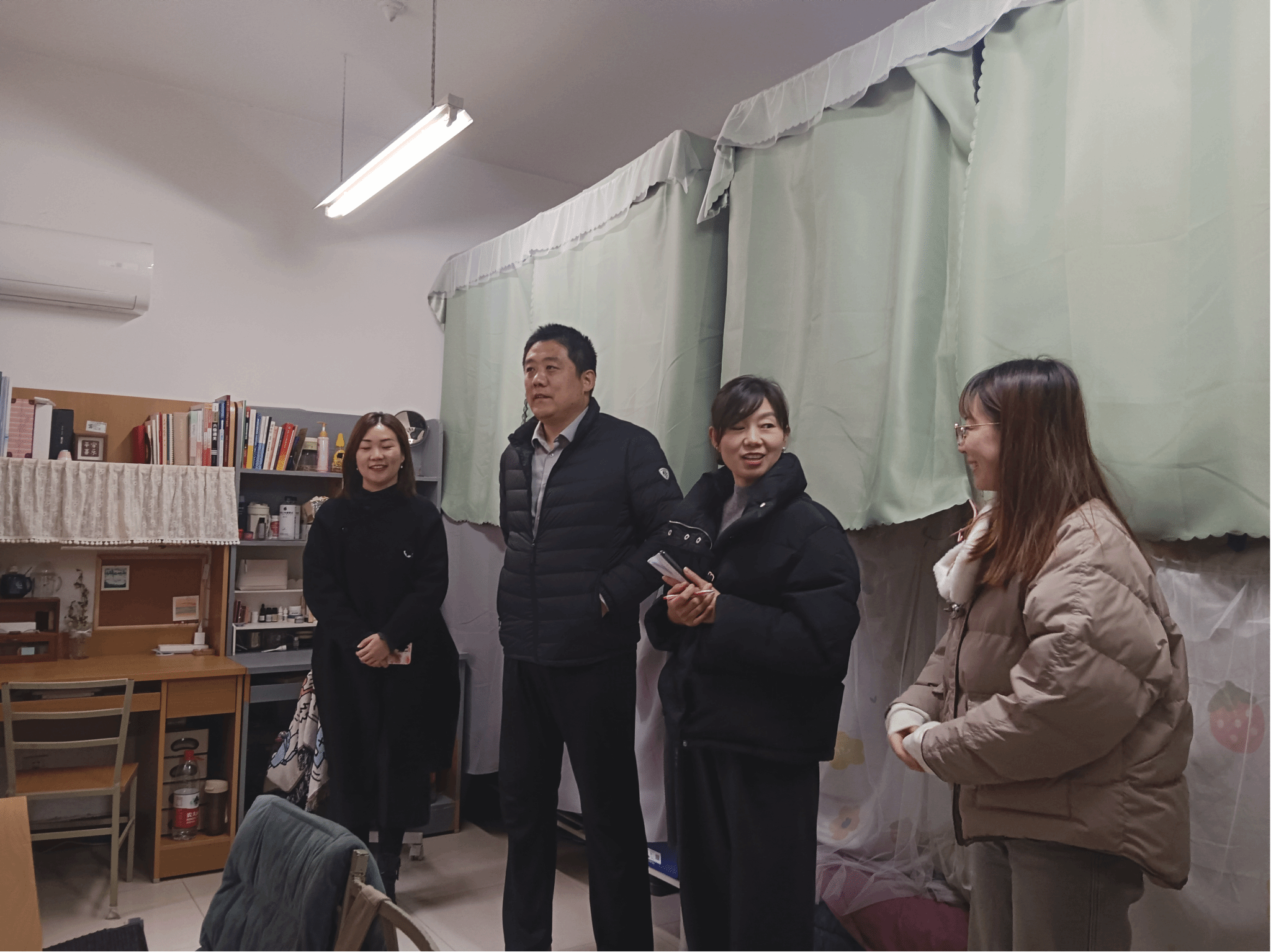 为核实学生返校情况,及时掌握新学期学生思想动态,排查宿舍用电、消防等安全隐患和春季传染病传播的卫生隐患,开展学生用电安全、传染病预防、防电信诈骗等宣传教育,2024年2月26日,beat365亚洲版官网党委副书记李刚与博士生辅导员许斯诺、硕士生辅导员王换、学生兼职辅导员王夏荷一同走访学院学生自习室与各年级学生宿舍。