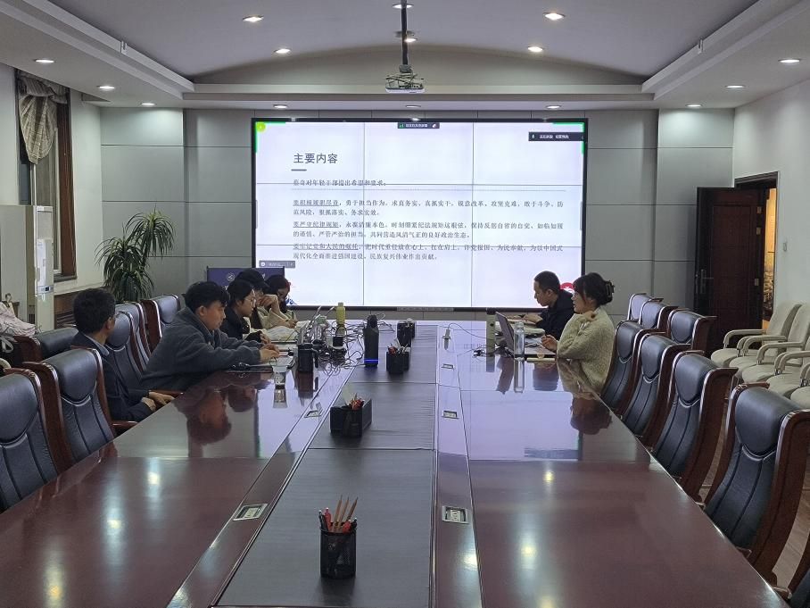 2024年3月20日,beat365亚洲版官网习近平新时代中国特色社会主义思想学习读书会第四十三期活动主题围绕《习近平在2024年春季学期中央党校(国家行政学院)中青年干部培训班开班之际作出重要指示》进行学习研讨。本次读书会由beat365亚洲版官网鲁杰思政课工作室主办,beat365亚洲版官网硕士生张转转主持,丁社教教授为对话教师应邀参加。读书会采取线上线下相结合的方式,邀请导读同学、对话教师、硕士博士生研究生在学院楼208室交流学习。