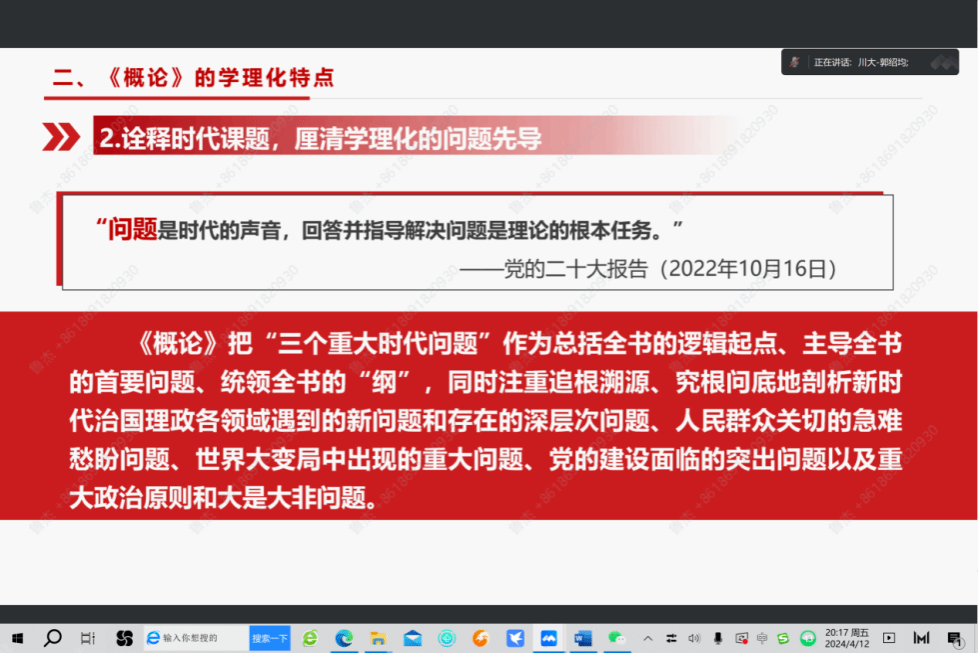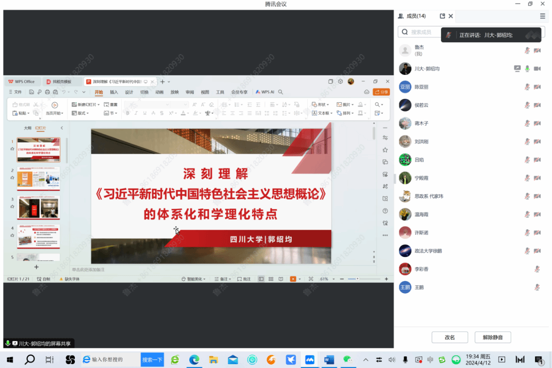 2024年4月12日晚19:30,beat365亚洲版官网研究生公共课《习近平新时代中国特色社会主义思想专题研究》课程组,邀请四川大学郭绍均副教授进行线上讲座,指导课程集体备课。讲座由课程负责人鲁杰教授主持,课程组全体教师及部分学院教师参加备课。