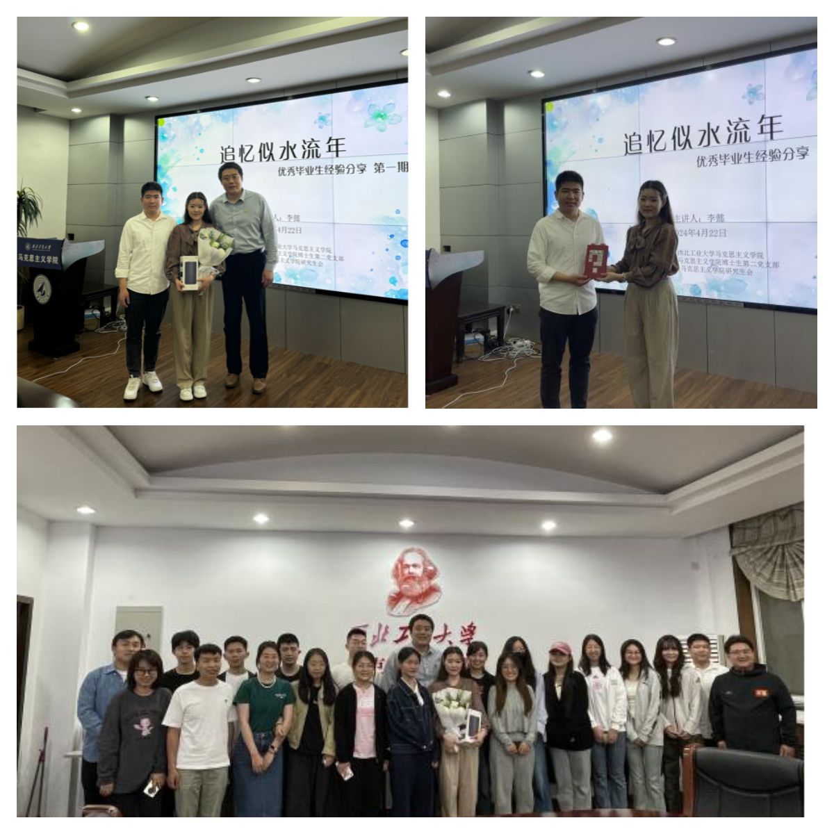 最后,李刚老师总结谈到,价值观直接影响人生目的、人生意义等问题的思考,影响人生道路的选择。人生的价值是在正确选择、奋勇拼搏中创造出来的,无论是硕士生还是博士生,都要做好人生的选择,坚持自己选择的道路。分享会的最后,李刚老师和李水同志代表学院和博士生第二党支部向李懿赠送纪念礼品,李懿向学院赠送《马克思为什么是对的》一书,并进行合影留念。