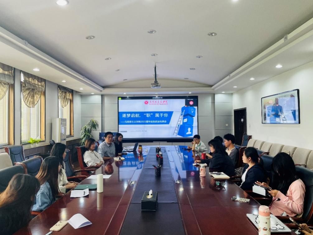 会议伊始,兼职辅导员单璐玉分析了马克思主义理论专业的就业形势,介绍了往届毕业生的去向,让大家对就业趋势有了初步认知。单璐玉依据2025届同学们填写的调查问卷,就求职的准备工作、职业发展规划、招聘信息的获取等方面进行了分析。除此以外,还讲解了毕业生签约流程、数字化签约平台的使用等相关事宜,并对毕业生推荐表、签订三方协议、毕业生改派等情况进行了说明。