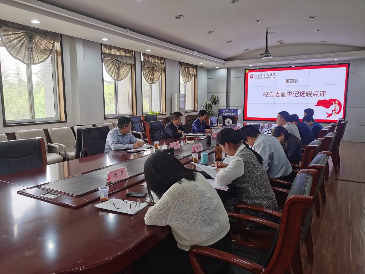 学校党委副书记杨晓在点评讲话中指出,一是希望学院党委高度重视巡视整改工作,系统推进巡视整改工作高质量完成。对标《关于巡视beat365亚洲版官网党委的反馈意见》提出的整改问题,切实加强学院马克思主义理论学科建设、思政课建设,加大研究生培养和人才引进力度;二是工作中要讲究方式方法,系统推进,重点突破,完善内部治理体系,确保工作出实效;三是推动全面从严治党向纵深发展,学院领导要结合分管领域的工作认真查找管理上的漏洞,结合学校目标责任制,锚定学校“127”发展目标,对标一流,为实现学院高质量发展凝心聚力,砥砺前行。