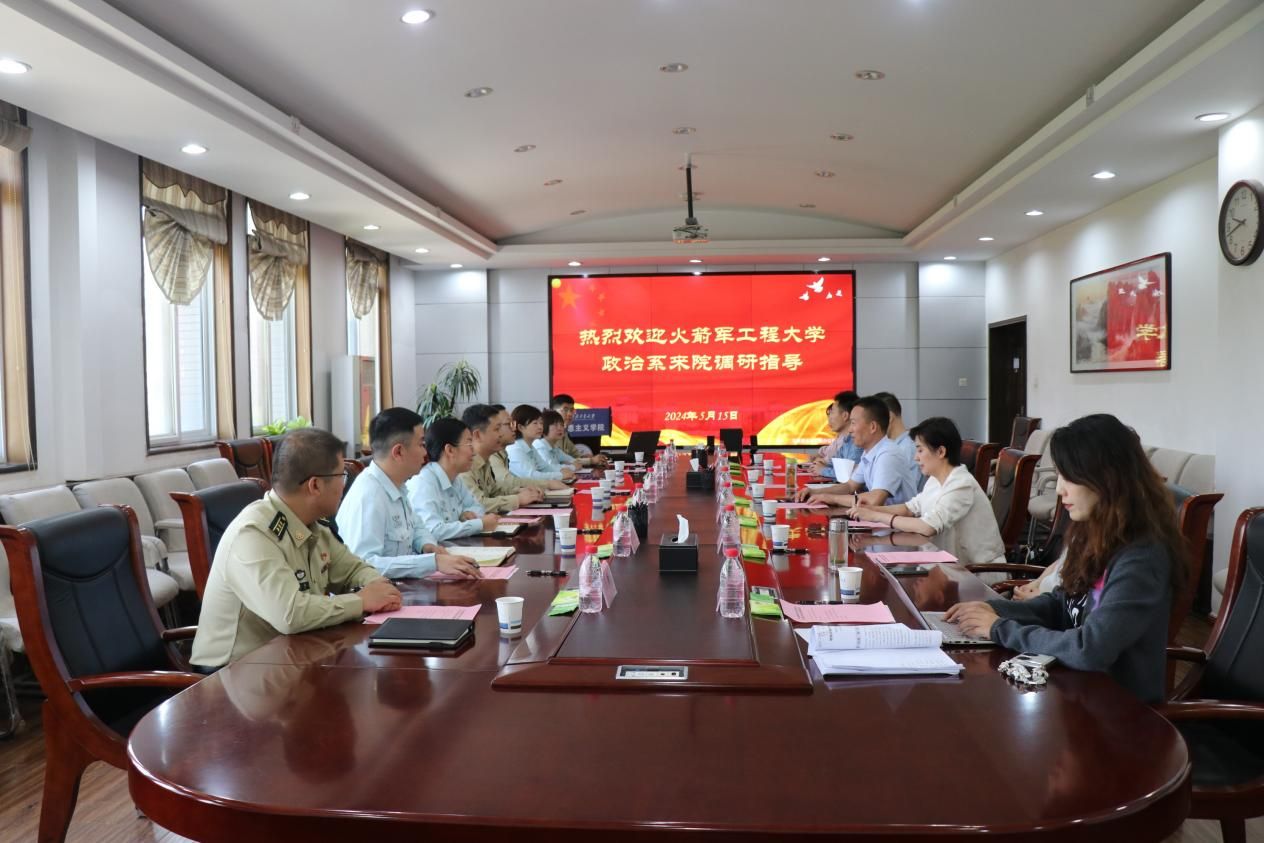 2024年5月15日上午,中国人民解放军火箭军工程大学政治系系主任高攀一行8人来beat365官网beat365亚洲版官网调研交流。beat365官网beat365亚洲版官网党委书记蒲传新等参加了调研交流会并主持会议。
