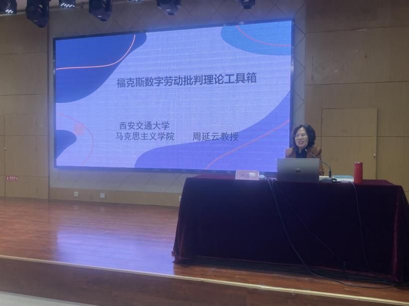 为深入学习贯彻习近平新时代中国特色社会主义思想,引导师生深刻把握信息时代马克思政治经济学的应用场域,提升学术前沿洞察力和理论创新力,2024年5月15日上午,西安交通大学周延云教授做客beat365官网翱翔灵犀学术殿堂,在beat365亚洲版官网207报告厅带来一场题为《福克斯数字劳动批判理论工具箱》的讲座。本次讲座由党委学生工作部主办、beat365亚洲版官网承办,beat365亚洲版官网宁殿霞副教授主持。会议伊始,宁殿霞隆重介绍了周延云教授的学术成就,高度评价了周教授在国外马克思主义研究特别是数字劳动领域的突出理论贡献。