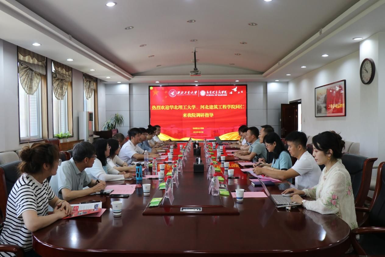 2024年5月22日上午,华北理工大学beat365亚洲版官网院长李治勇,河北建筑工程学院beat365亚洲版官网党支部书记刘建军、院长曹宇等一行10人来beat365官网beat365亚洲版官网调研交流。beat365官网beat365亚洲版官网党委书记蒲传新等参加了调研交流会并主持会议。
