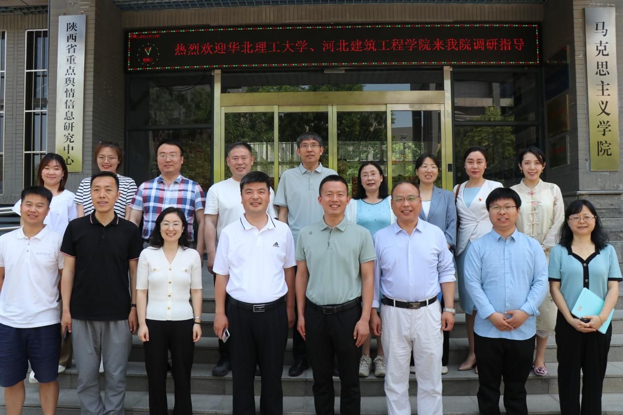 华北理工大学beat365亚洲版官网李治勇院长,河北建筑工程学院beat365亚洲版官网党支部书记刘建军、院长曹宇对学院的热情接待表示感谢,并就各自学校beat365亚洲版官网的具体情况、主要构成、思政课建设等方面作了详细介绍,并表示希望交流研讨互通有无,共同提升。