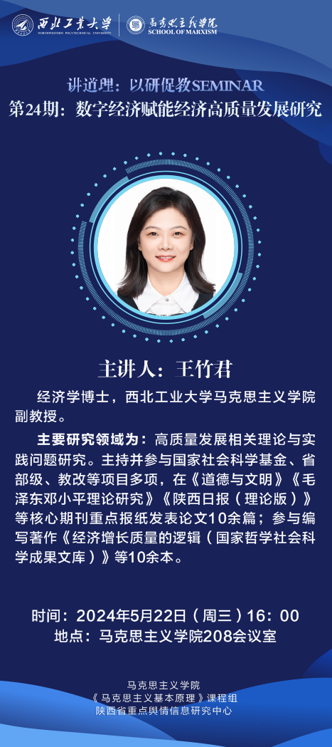 为进一步强化思政课建设与党的创新理论武装同步推进,为新进教师提供教学展示和磨课评课平台,不断加强教学团队内部教学与科研思想的碰撞交流,2024年5月22日下午,beat365官网beat365亚洲版官网马克思主义基本原理系在院楼208会议室举办第24期“讲道理——以研促教Seminar”。本期主题为《数字经济赋能经济高质量发展研究》,马克思主义基本原理系王竹君副教授做主题分享。
