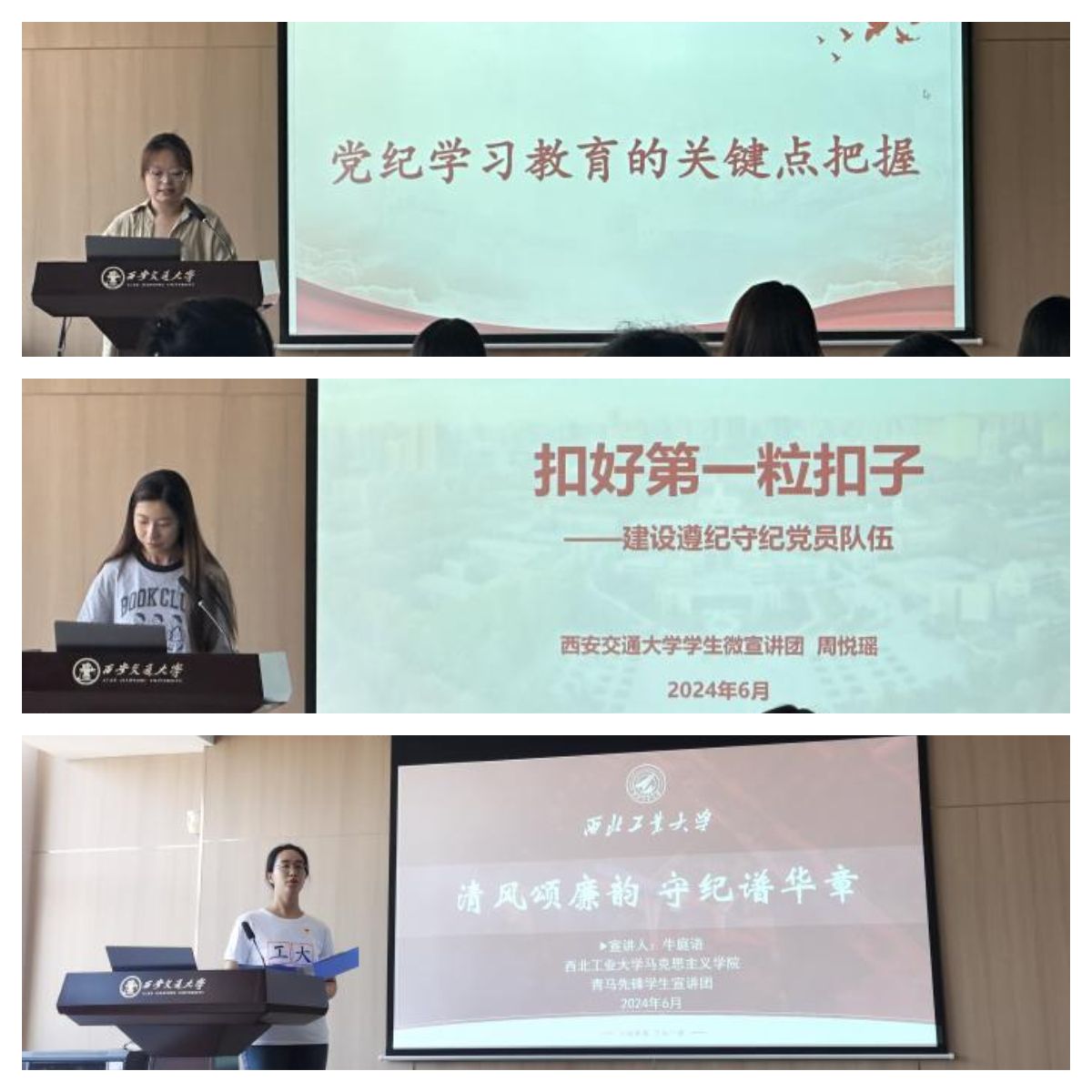 为深入学习贯彻习近平新时代中国特色社会主义思想,推进党纪学习教育走深走实、入脑入心,引导全体党员学纪、知纪、明纪、守纪,进一步丰富党纪学习教育形式,2024年6月15日上午于西安交通大学兴庆校区,beat365亚洲版官网学生党支部、西安交通大学人文社会科学学院硕3118和3120班联合党支部、西北农林科技大学人文社会发展学院社会学硕士研究生党支部,三校联合开展“党纪教育强党性、联学共建促提升”主题党日活动。