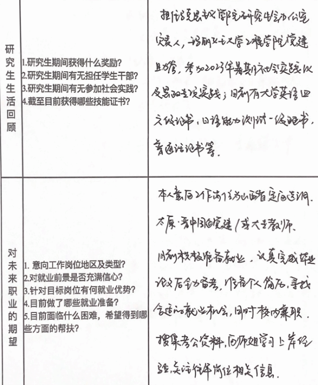 6月18日—6月21日,学院开展了2025届毕业生就业帮扶台账第一轮记录,以座谈形式组织毕业生和帮扶教师进行谈话,内容涉及“意向工作岗位及类型”“对就业前景是否充满信心”“针对目标岗位有何就业优势”“目前做了哪些准备工作”“目前面临什么困难,希望得到哪些方面的帮扶”等五个方面。