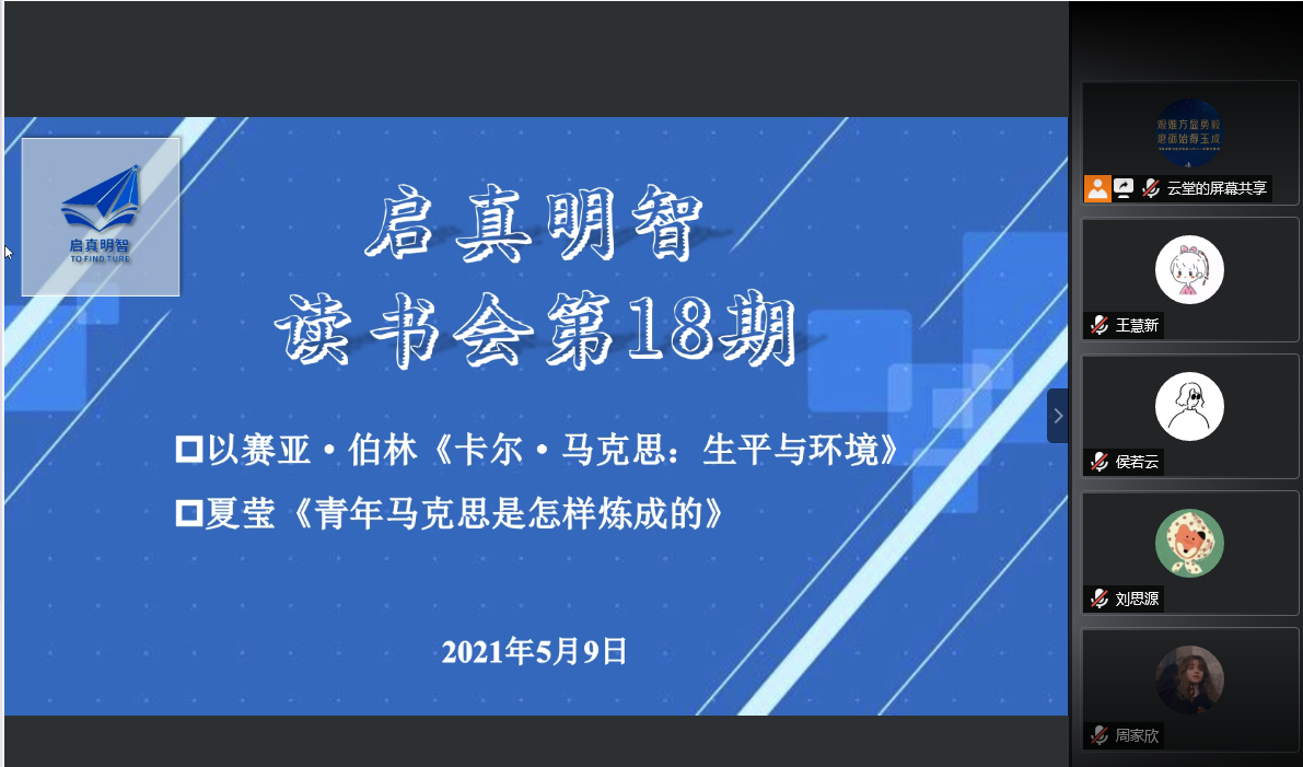 5月9日晚7点,启真明智读书会第18期以线上的方式顺利举行。beat365亚洲版官网张云龙教授与杨永强老师参加了此次活动,与同学们一起阅读以赛亚·伯林的传记作品《卡尔·马克思:生平与环境》,本次读书会阅读了书中第一章节的内容。