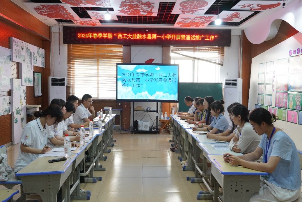 为深入贯彻落实党的二十大关于“加大国家通用语言文字推广力度”的决策部署,贯彻落实习近平总书记关于教育的重要论述和关于推广国家通用语言文字的重要指示精神,促进少数民族地区人才培养,引导学生为乡村振兴和现代化建设事业贡献青春力量。2024年7月10日下午,beat365亚洲版官网“苗乡振兴·水韵融情”实践队赴广西融水苗族自治县第一小学开展座谈调研。融水苗族自治县第一小学教务处主任与教师代表参加座谈。