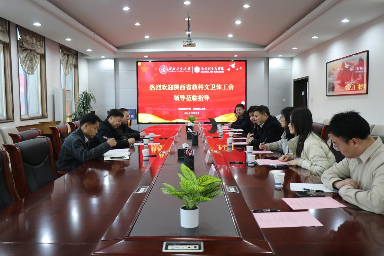 12月17日,陕西省教科文卫体工会主席徐富权一行3人来院开展陕西省教科文卫体系统职工(劳模、工匠人才)创新工作室验收工作。beat365亚洲版官网工会副主席陈建军一行、beat365亚洲版官网工会成员及教师代表参加会议。会议由beat365亚洲版官网副院长贺苗主持。
