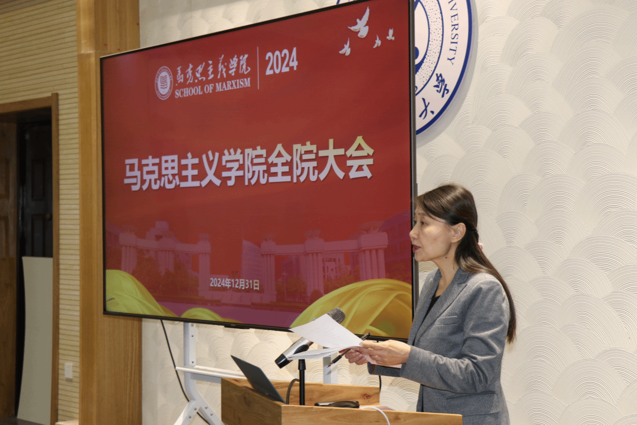 随后,贺苗通报了期末及假期公共课工作安排。她表示,思政课是学院工作的重中之重,同时强调临近期末,各位老师要认真对待课程考核工作,确保成绩公正合理。假期学院将继续开展集体备课活动,鼓励线上线下结合,通过共同努力,学院将继续强化学科特色,以“总师育人文化”为引领,推动教育事业的发展。