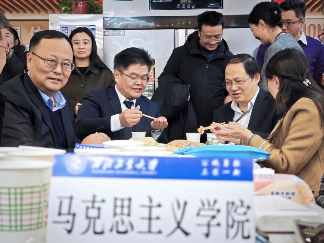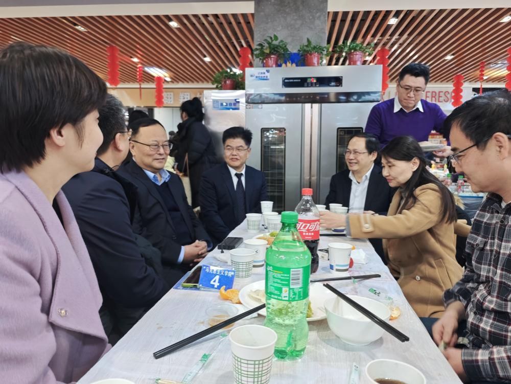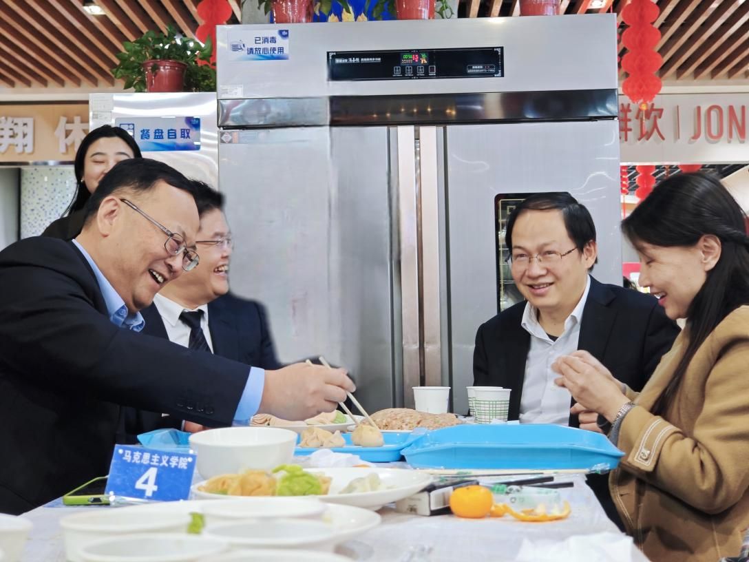 包饺子活动开始前,学院党委书记王彦革、党委副书记耿云辉与学工主管、辅导员、学工干部深入学生宿舍,开展新年慰问,深入了解学生的思想、学习和生活情况。走访期间,院领导与同学们亲切交谈,听取学生对宿舍环境、学习成长等方面的意见和建议,提醒同学们合理规划作息时间,并重点排查宿舍安全隐患和开展安全教育。
