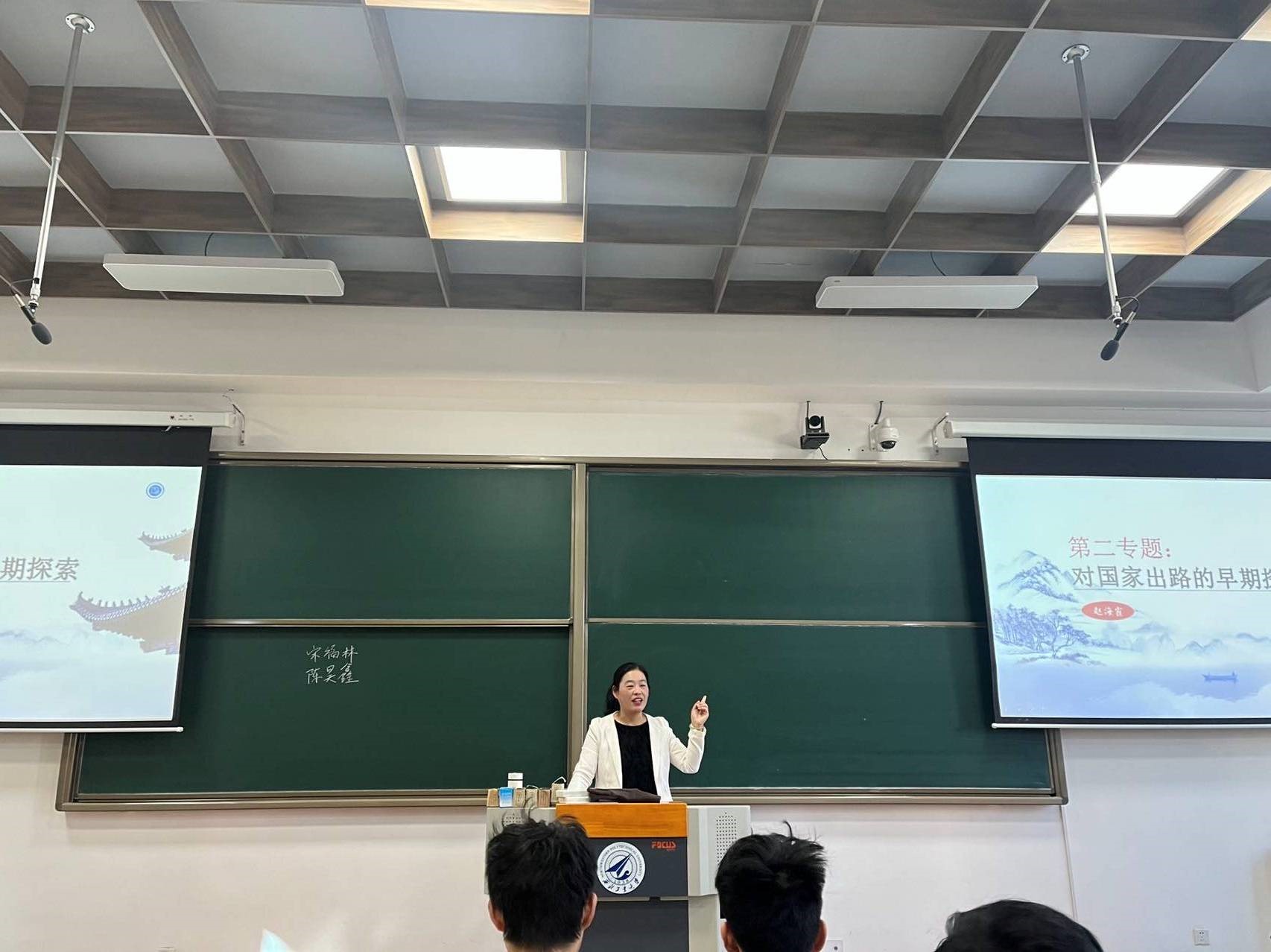 本节课赵海霞老师首先给学生讲述了中国近现代史纲要”第二章“不同社会力量对国家出路的早期探索”,让学生了解近代以来中国一代又一代的仁人志士为救亡图存和实现中华民族伟大复兴做出一系列的努力与探索。