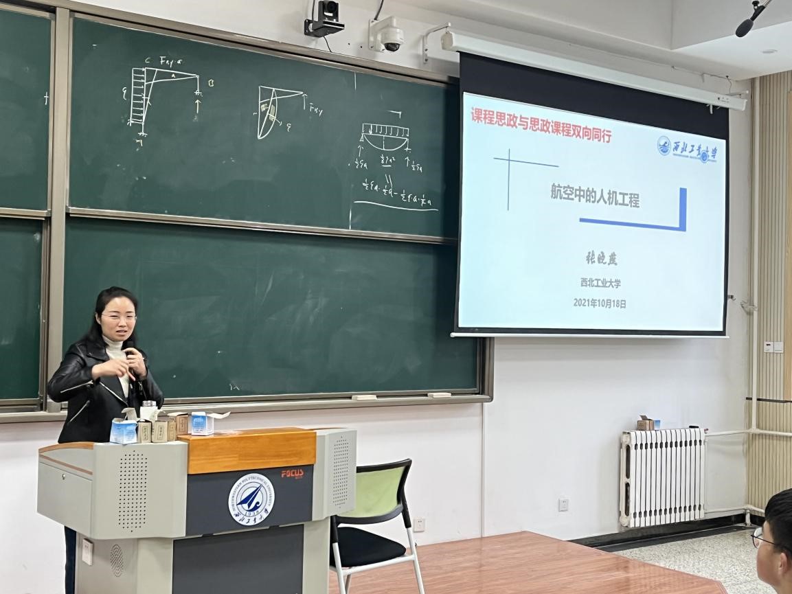 随后,张晓燕副教授以“航空中的人机工程”为主题,通过生动、典型的案例分析,讲授了新中国成立以来中国航空人在人机设计与评价领域的发展历程,分享了西工大航空人在为祖国的航空航天事业辛勤耕耘、无私奉献,做出突出贡献的故事。