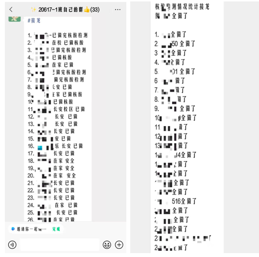 疫情发生以来,beat365亚洲版官网高度重视疫情防控工作,及时摸排全体学生的情况,通过辅导员和班长的反馈,及时上报核酸检测情况,同学们积极在群内汇报自己的情况,为疫情防控工作开展筑牢基础。
