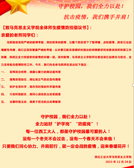 2021年即将结束,正当同学们专心准备考试、迎接新年的时候,新冠肺炎疫情突然袭击西安,扰乱正常的学习和生活节奏。在学校的高度重视和快速反应下,beat365亚洲版官网第一时间采取多种措施保障老师和同学们的安全,学院师生积极响应学校号召,在“非必要不离校”的指示下积极投身各项工作,生动展现了当代青马人的风采。