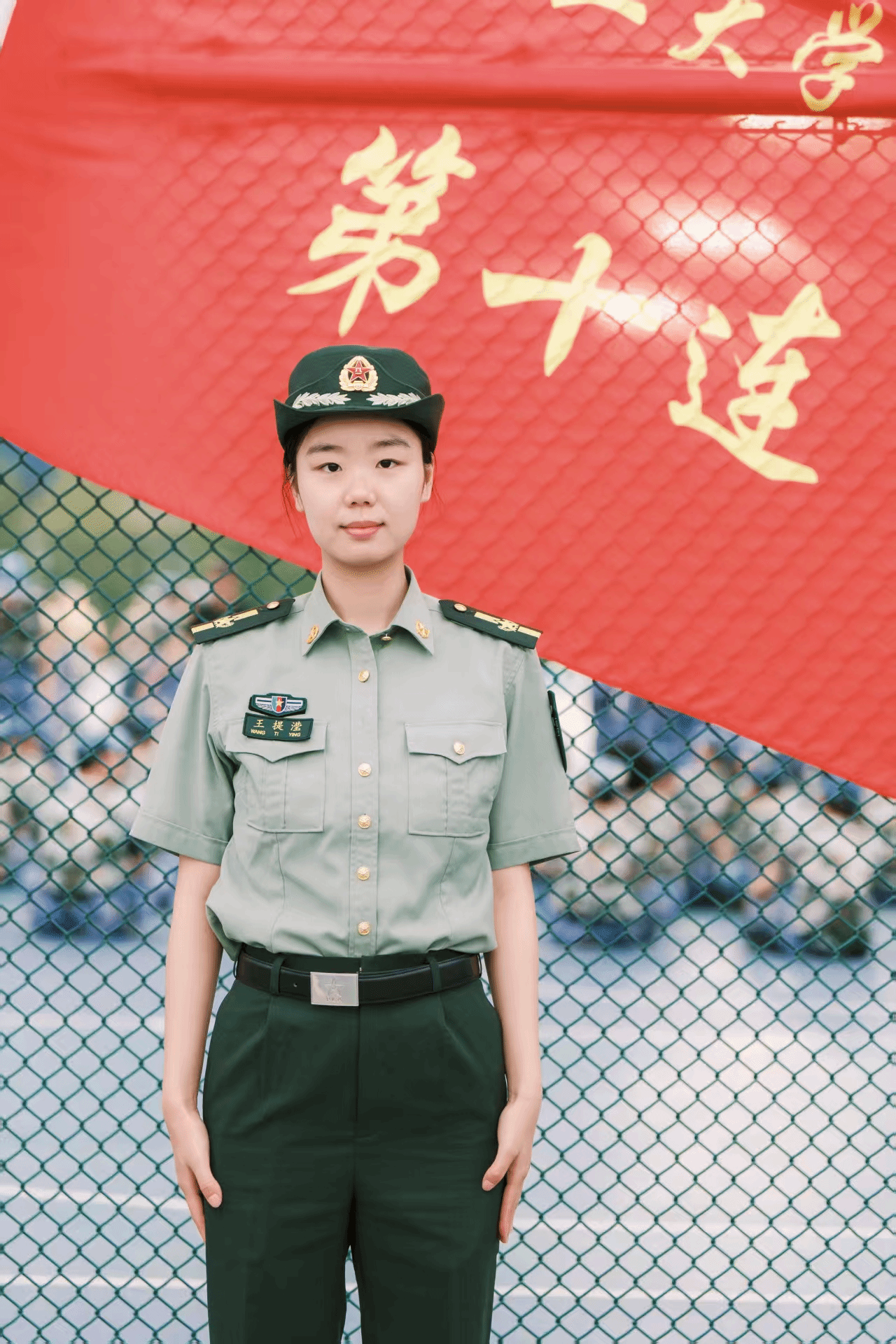 王提滢,学院2025级春季博士研究生,目前在教育实验学院/未来技术学院/学科交叉中心任兼职辅导员,此次担任军训师二团10连副指导员