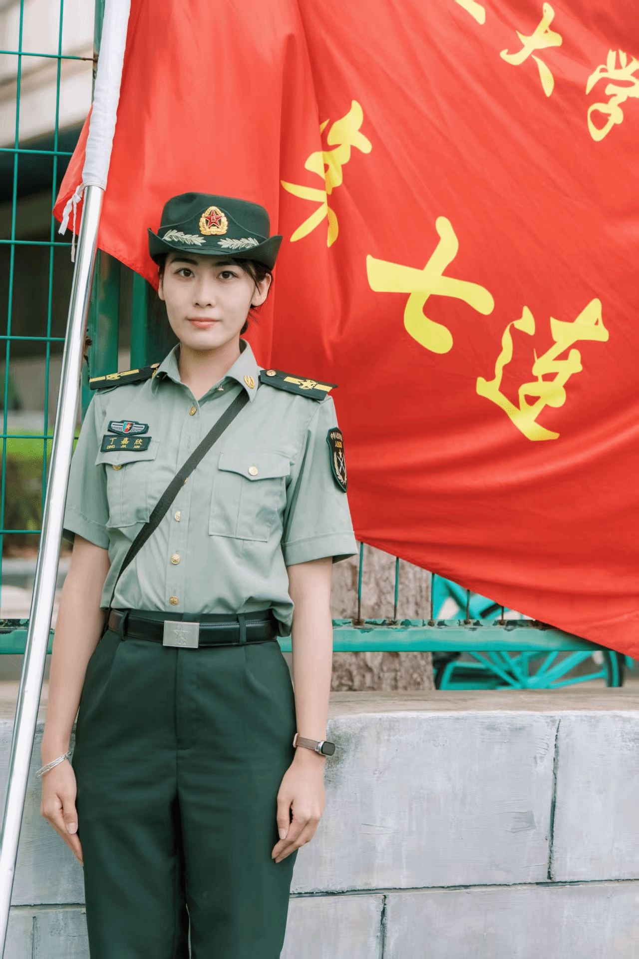 丁嘉欣,学院2025届硕士毕业生,目前在微电子学院任职,此次担任军训师一团7连指导员