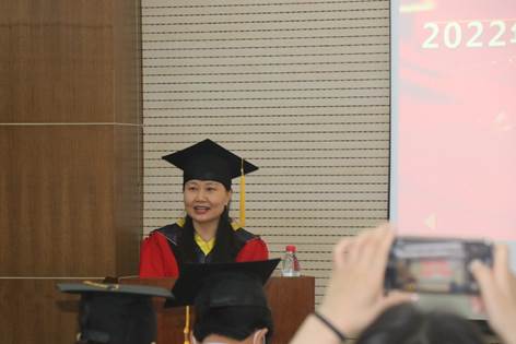 研究生导师代表曹瑜老师表达了对于毕业生们的祝贺。天行健,君子以自强不息;地势坤,君子以厚德载物,他鼓励同学们面临人生中种种苦恼的时候要初心不改,牢记使命,要放飞梦想,勇于追梦,未来已来,望同学们归来仍是少年!