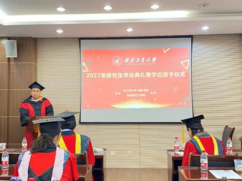 2019级马克思主义基本原理专业硕士研究生周家欣作为毕业生代表发言,对学院老师们的耐心指导表达感激,对学校学院提供的资源和环境表示感谢,在未来会谨记老师们的教诲,弘扬“公诚勇毅”的校训和“三实一新”的校风,做一名不愧于时代的青马人!