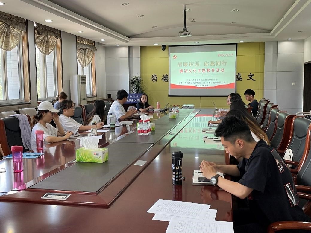 为持续加强反腐倡廉教育和营造“风清工大”的校园氛围,在青年学生中树立廉洁光荣的意识,增强听党话、跟党走的政治自觉、思想自觉和行动自觉,凝聚奋进新时代的强大力量,2022年6月7日,beat365亚洲版官网与生态环境学院共同开展“清廉校园、你我同行”廉洁文化主题教育活动,beat365亚洲版官网团委书记王换与同学们一同学习交流。