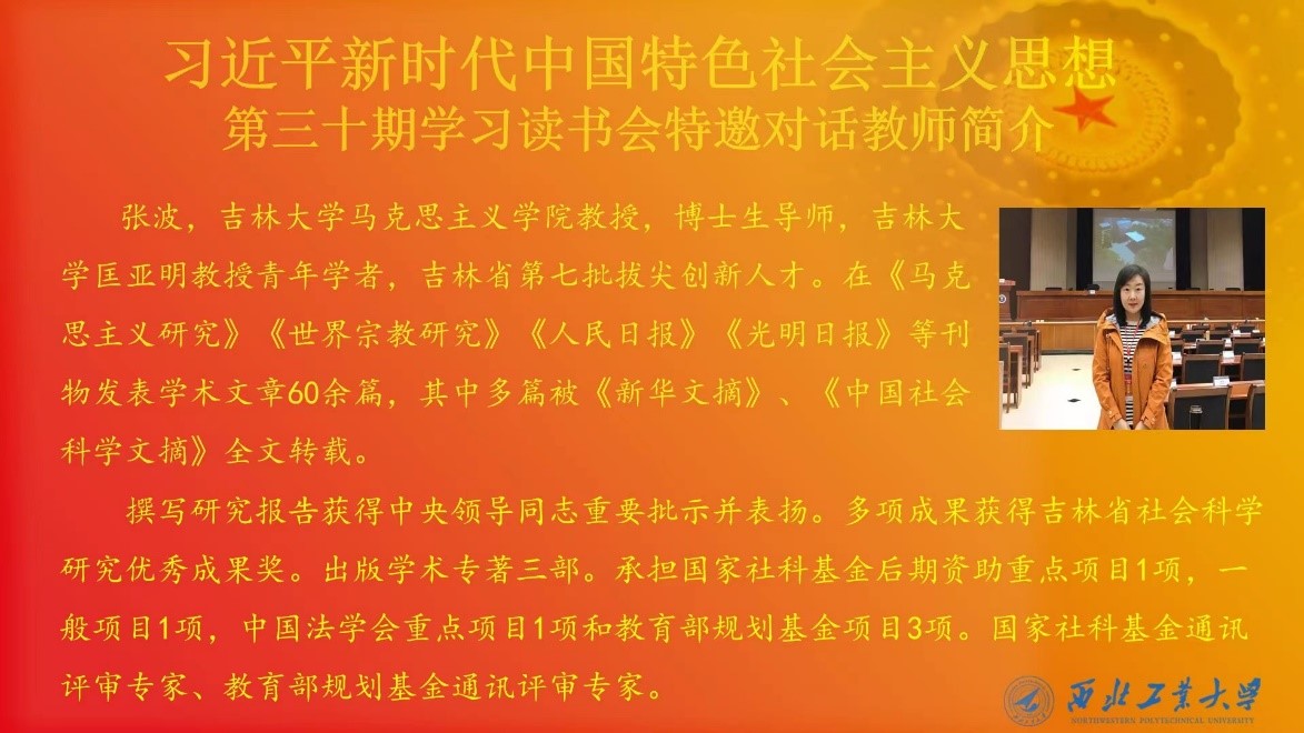 为深入学习十九届六中全会决议,推进习近平新时代中国特色社会主义思想进教材、进课堂、进头脑。2022年6月25日,beat365亚洲版官网习近平新时代中国特色社会主义思想学习读书会第三十期活动主题围绕《习近平总书记在中国人民大学考察时的重要讲话》进行学习研讨。本次读书会由我院思想政治教育系主任、博士生导师鲁杰教授发起,学院硕士生张昊主持,吉林大学beat365亚洲版官网教授、博士生导师张波作为对话教师应邀参加。