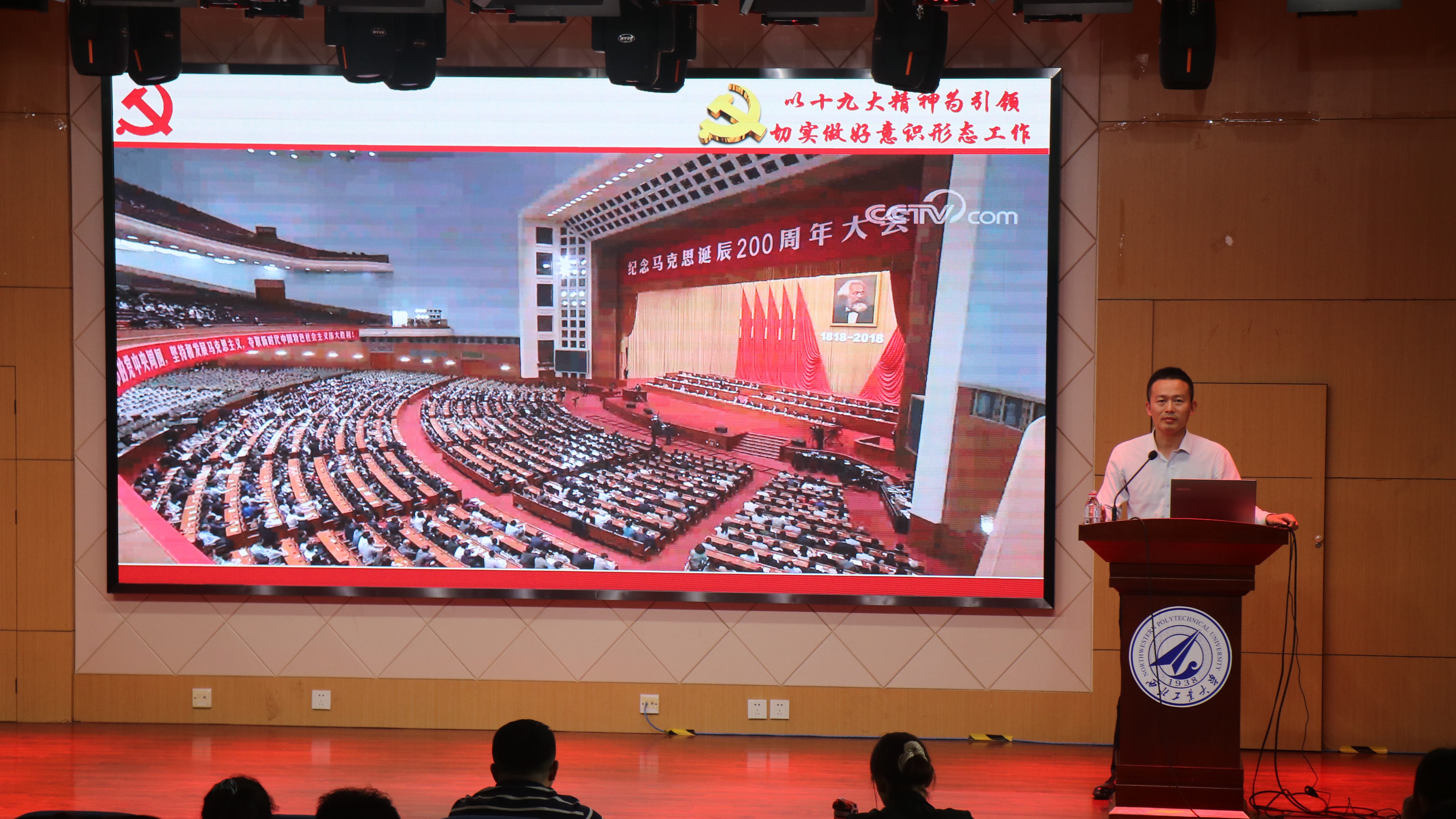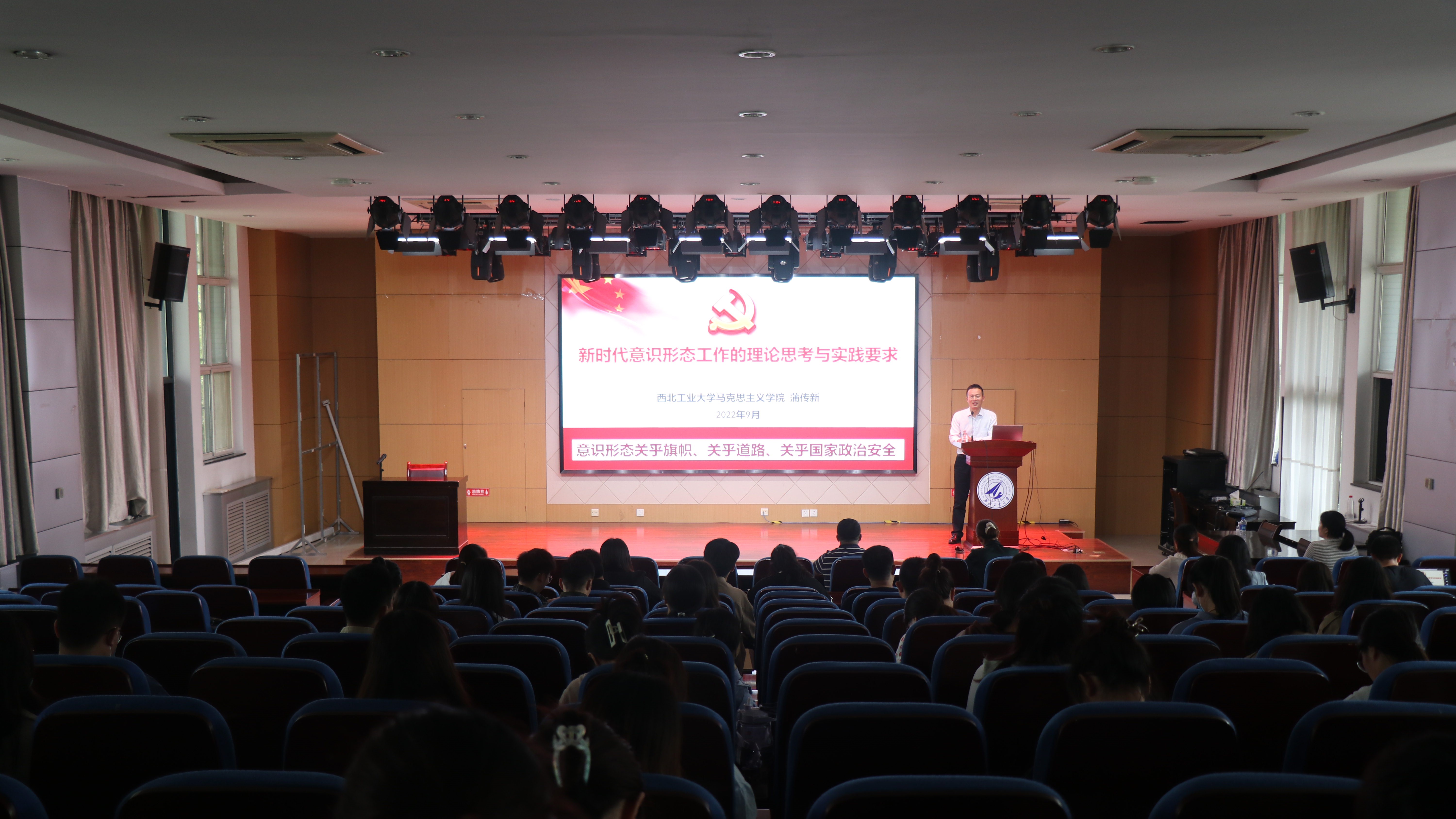 为进一步加深学院师生对意识形态工作重要性的认识,进一步增强“四个意识”、坚定“四个自信”、做到“两个维护”,迎接党的二十大胜利召开。9月22日下午,beat365官网beat365亚洲版官网党委副书记(主持工作)蒲传新围绕“新时代意识形态工作的理论思考与实践要求”这一主题,开展专题党课,学院师生各党支部书记、支部委员、党员、团员代表等参加学习。