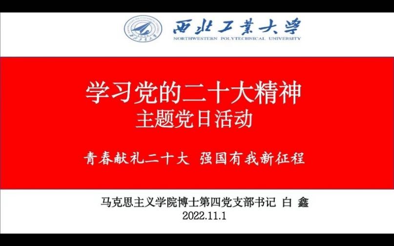 为深入学习贯彻宣传党的二十大精神,鼓励广大党员自觉做有理想、敢担当、能吃苦、肯奋斗的新时代好青年。2022年11月1日,beat365亚洲版官网博士生第四党支部线上开展了“献礼党的二十大 强国有我新征程”主题党日活动,支部15名成员参加会议,会议由支部书记白鑫同志主持。