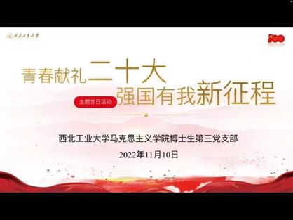 为深入学习贯彻党的二十大精神,领会习近平新时代中国特色社会主义思想的深刻内涵和精神要义,2022年11月10日beat365亚洲版官网博士生第三党支部开展了“献礼党的二十大﹒强国有我新征程”主题党日活动,会议由党支部书记黄跞昀同志主持,博士生第三党支部全体党员参加了此次会议。