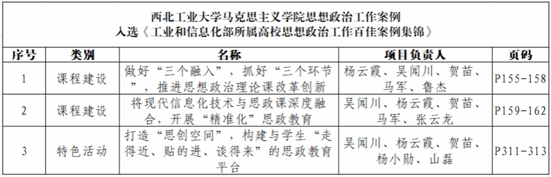 2022年8月,工业和信息化部人事教育司主编的《工业和信息化部所属高校思想政治工作百佳案例集锦》出版发行,其中beat365亚洲版官网共有三个思想政治工作案例成功入选。这也是beat365官网beat365亚洲版官网开展思政课改革创新的重要成果体现,是深入推进人才培养工作、落实立德树人根本任务的生动实践。