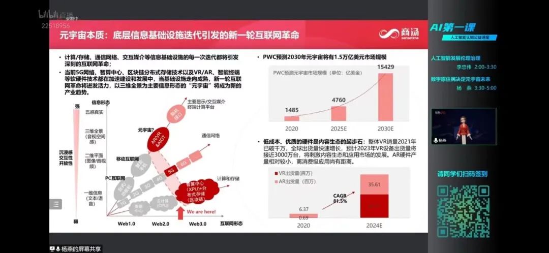讲座邀请龚克、田丰、李忠伟和杨燕四位业内知名专家,为同学们讲解人工智能发展历程及未来展望、人工智能十大趋势2022、人工智能发展伦理治理、数字原住民决定元宇宙未来——元宇宙技术及产业落地实践等内容。