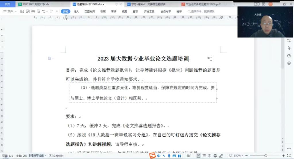 为切实做好2023届数据科学与大数据技术专业毕业论文选题工作,保证毕业论文质量。10月8日晚,新葡官网于线上召开了2023届毕业论文选题培训会,新葡8883官网AMG官网院长李燕玲、副院长安雷,全体指导教师及2019级数据科学与大数据技术专业学生参会,会议由教研室主任刘健老师主持。