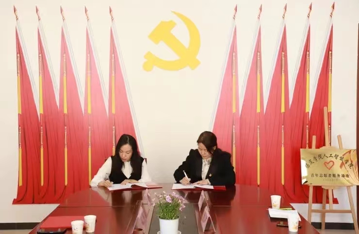 院党总支书记田欣、保师附校东湖分校党支部书记孙玉静签署《志愿者服务基地协议》,为“新葡8883官网AMG官网青年志愿者服务基地”揭牌。