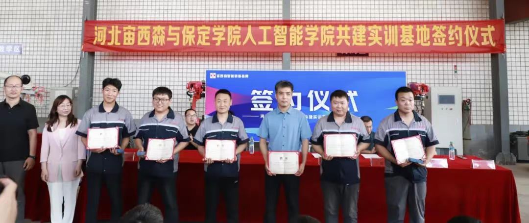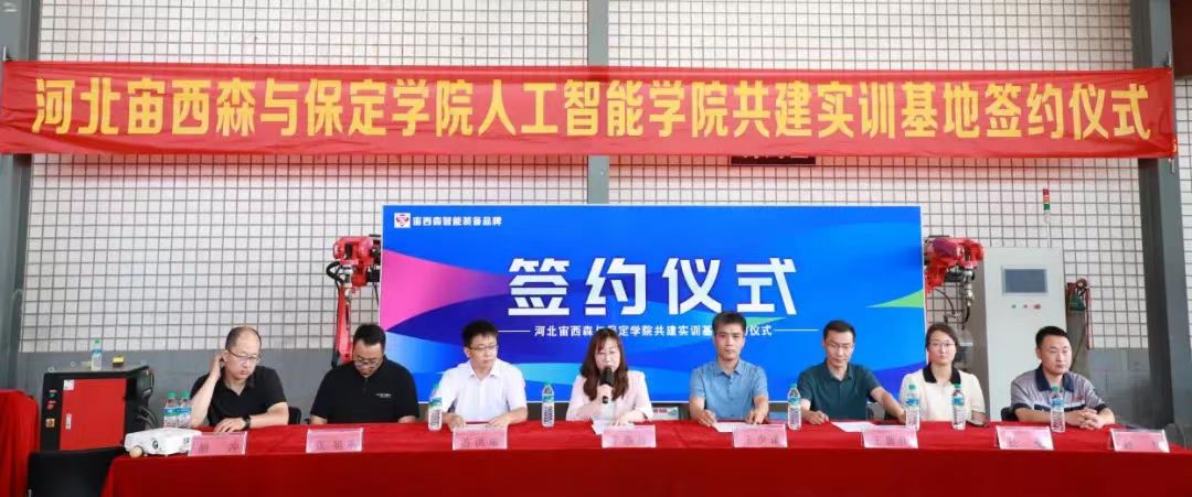 为加强校企合作,深化产教融合,积极探索校企互动、合作双赢的产学合作机制,2023年6月16日下午,新葡官网与河北宙西森智能装备有限公司就《工业机器人示教编程实践》实训基地举行结课仪式暨签约仪式,出席仪式的有新葡官网院长李燕玲、宙西森总经理王少谦、竞秀区科技局局长王新伟、竞秀区科协主席苏洪瑞、竞秀区就业局局长苌曼、和金人力总经理张旭东、机器人工程教研室主任胡冲、相关任课老师以及2021级机器人工程全体学生。