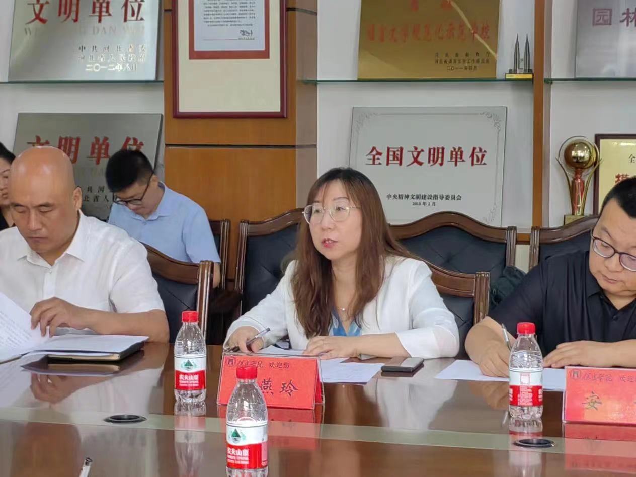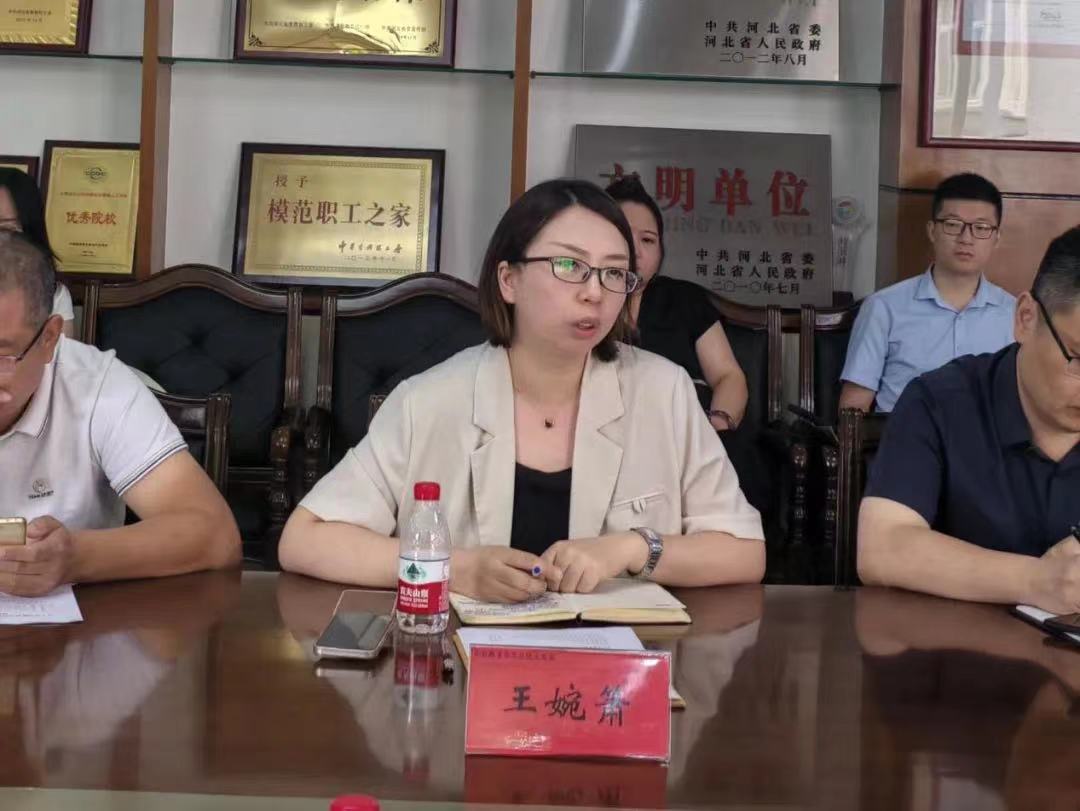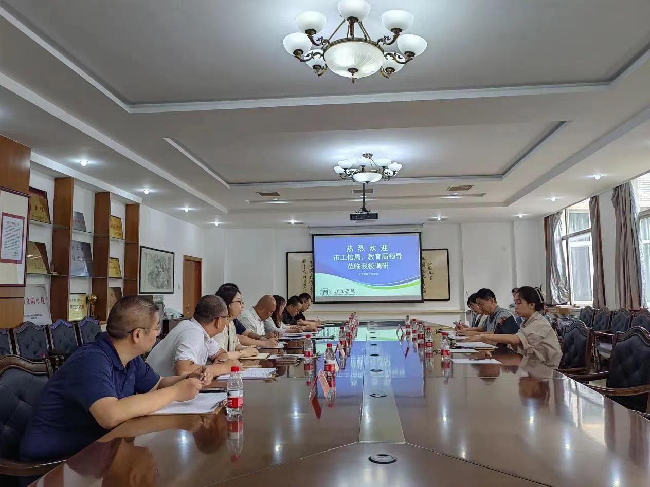 7月11日上午,保定市工业和信息化局二级主任科员孙秋立、教育局高职成教处杨若妍 、保定市企业家协会服务中心副秘书长任秋梅来新葡官网进行调研交流。新葡官网党委常委、副校长孙斌,新葡8883官网AMG官网院长李燕玲、教务处副处长刘仲鹏、新葡8883官网AMG官网副院长安雷参加了本次调研。